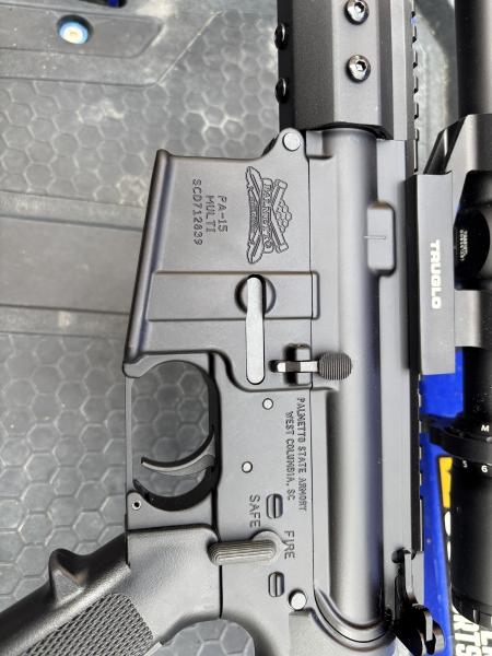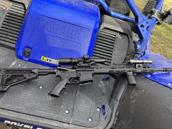 | PALMETTO AR-15 SHOOTS .223 OR .556. HAS TRU GLO SCOPE AND O-LIGHT. WILL COME WITH ANOTHER SCOPE, 5 CLIPS AND 600 RDS OF AMMO. |