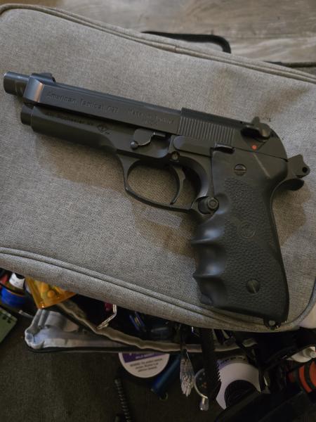 | American tactical c92 in 9mm. Beretta clone. Has a extended Beretta barrel and 2 magazines. Full size pistol. Operates as it should. Price is 300 firm. Text only. No phone calls. No I won't call you either. Public meet up only. 270556724eight. No text after 7pm please. |