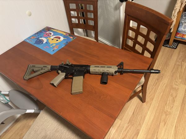 | I have an aero precision in good condition, comes with 5 magazines all tan in color. The stock, forearm, and Magpul grip are all tan as well. Comes with tan flip up sight as well. Any questions, feel free to call or text at 270-227-3973. Thank you. |