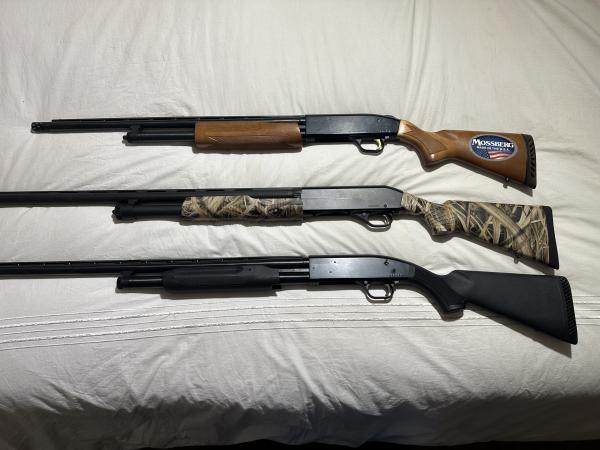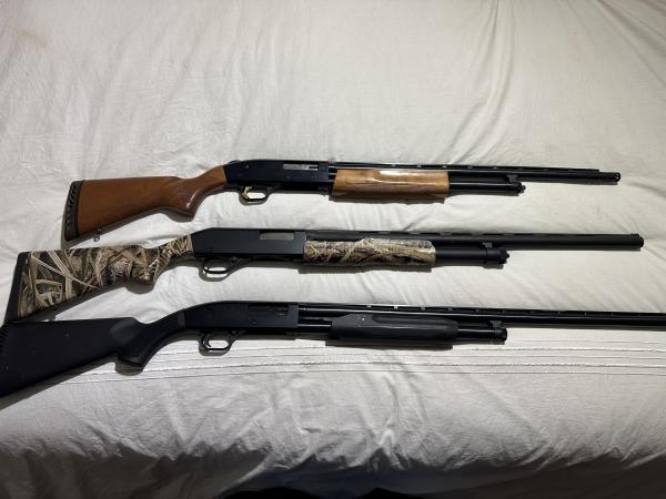 | Mossberg 500 20ga Pump. (top) 22” Accu Choke 2.75 & 3 in Shells $225.00 Stevens Camo Model 320 12ga Pump (middle) 26” Barrel 2.75 & 3 in shells $200.00 Maverick Model 88 12 ga pump (bottom) 28” Accu Choke 2.75 & 3 in shells $185.00 Call or text 2seven0-2nine3-8two8five with any questions |