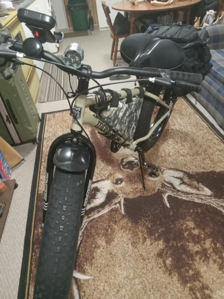 | For Sale: Mongoose Malus Fat tire bike. Comes with Rock Bros pedals, cell phone holder, sticky finger brake grips,rechargeable headlight, battery operated tail light, Rear rack with Rambo bike saddlebags,front and rear fenders, frame bag and a serfas saddle seat. Perfect for mountain biking or hunting. Never ridden outside. Always been stored inside house. Asking 400.00. Firm on price. Bike has over $400 in extras. Call Ryan at 618-864-0164. |