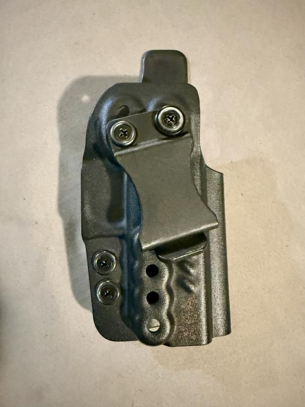 | Up for sale is a kydex IWB holster for the Glock 43x. Holster will accommodate an optic and accessory rail. Holster is adjustable for angle placement. Please feel free to email, call or text with any questions. Asking $15 Email: dmt77@att.net Cell: 270-705-1880 |