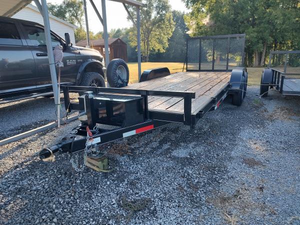 | Trailer with 2, 6000lb axles, tool box, spare tire. has a 4' spring loaded gate on it but can use ramps if you need. ramps not included. has only been used a few times to haul antique tractor. Floor has just been sanded and refinished. has a few extra lights. pulls great. has light on the tool box to light up the trailer floor when loading at night. Asking $3900 cash only text or call 7317960047 |