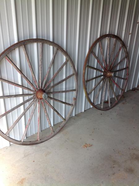 | Wheels are in good condition for their age, wood make good yard art |