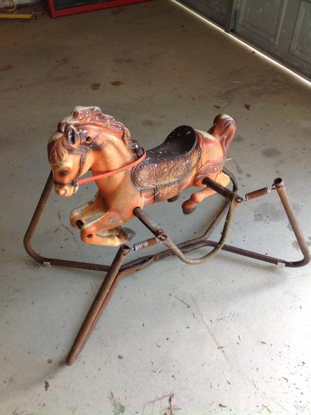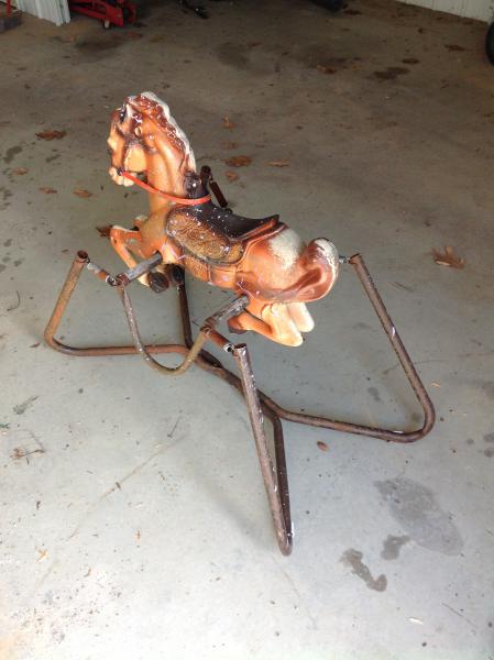 | Old rocking Horse not safe to play on, great for yard art |