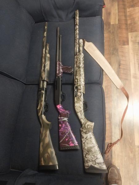 | 1 mossberg 500 12 ga, 28 in ported barrel with screw chokes camo --350.00. Mossberg 500 ,410 turkey special has factory muzzle break and choke built in ,comes in muddy girl camo -350.00. Charles daly 20 ga camo shoots great 275.00. Trades ??? Text 270 207 1498. Pics coming |