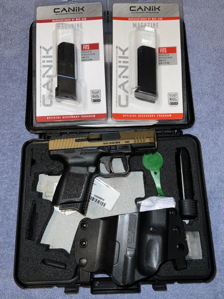 | Canik TP-9 SC LIPSEY Exclusive factory Bronze Cerakote finish. Fired approximately 100 shots. Included four mags.1-12 flush fit. 2-12 round extended and 1-15 round extended. Asking $400.00 for all. Kentucky Residents only with ID. Kentucky CCDW preferred Kentucky Drivers License as alternate ID. Please call270-356-0540 between 10 AM and 10 PM. Thank you for looking |