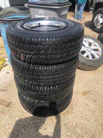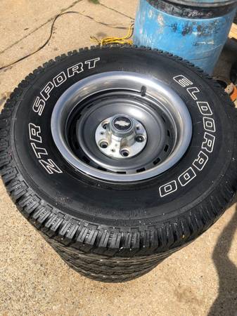 | Hard to find Chevy Truck 5-Lug wheels for 1974 to 1987 Chevy 2-Wheel Drive trucks with like new 31X10.50-15 All Terrain tires. This set comes complete with stainless steel beauty rings and factory center caps. Wheels and tires are in excellent condition and are ready to bolt on. Complete set is $600.00 Text only (270) 556-1571 |