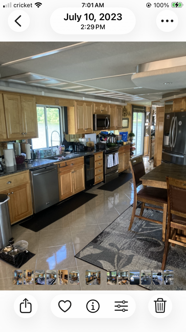 | Nice 2001 Fantasy Yatch 86x18 Has twin 5.0 engines with only 750 hrs Westerbeke generator with 1150 hrs. 4 bed , 2 bath, master bedroom is king and master bath has jacuzzi tub plus a shower Bow and stern hydraulic thrusters Hot 3000 watt inverter All stainless appliances and fairly new, ice mach. Washer/dryer Hot tub, bar, tv, on upper level Upper deck has 3 coats of dura-back membrane coating applied recent No soft spots, has never had any leaks, non smoker and never a live on. Boat is solid thru & thru runs and handles great. So many other features !! |