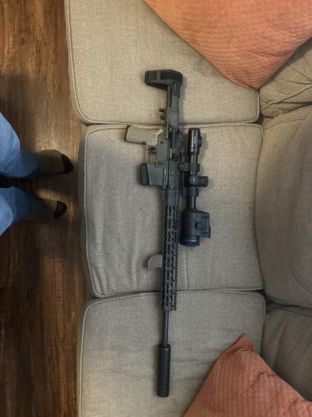 | Built 5.56 Ar-15 that is an absolute tack driver, with a Pulsar XQ50 LRF PRO. Got just at 6 grand in total into the both of them. The rifle really likes the 73gr BT Target ammo, consistantly getting .5in groups out at 200yards. For more info or offers text: 270-254-0202 |