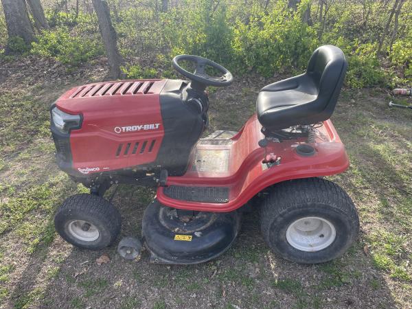 | 2017 Troybilt Bronco lawn tractor. Fresh oil change and filter with new blades. 42 inch cut. Will need a battery and needs a small spray of ether to get started. Probably an easy fix for someone who can clean a carb. OBO. 270-519-9347 |
