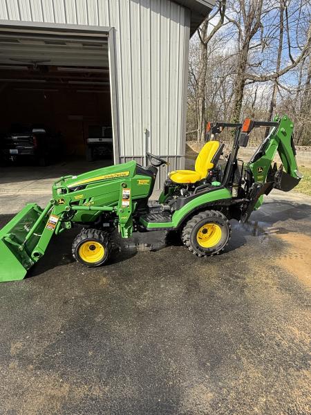| Like new 1025r John Deere with jd backhoe - 4 ft frontier bushog and frontier post hole digger. Tractor has 57 hours and is new. $17,900 firm. Call 270-556-2641 |