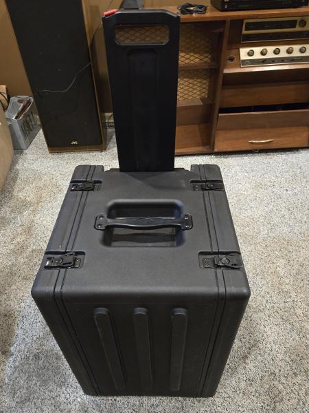 | SKB rSeries Shallow Rolling Rack Features: 8U rolling rack case for best-in-class rack mobility and safety Roto-molded, low-density polyethylene construction for optimal impact resistance 11.75-in. rail-to-rail depth accommodates myriad rackmountable gear with rock-solid support Side-mounted wheels and a telescoping pull handle for easy gig-to-gig transport Gasket-sealed front and rear lids for maximum waterproof protection Nonslip rubber feet ensure stability in virtually any environment Robust flush-mount handles and recessed twist latches Included rackmount screws for immediate rack integration Brand New |