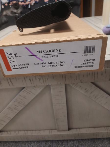 | Colt M4 5.56. Like new. Fired 60 times. Comes with 1 30 round magazines. |