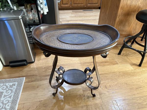 | Beautiful antique serving stand with removable serving tray. Excellent condition. Pick up only.$100.00 or best offer. Can call or text, 618317-1139 |