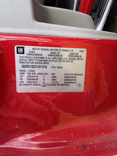 Truck: 2007 Chevy Silverado: red, +/-122,596 miles w/4.8 Vortec V8 engine, new battery, 2-wheel drive, power windows/locks, captain seat, tilt steering wheel, cruise control, tow package, auto-beam headlights, left & right steering wheel controls, VIN #2GCEC13C571671218