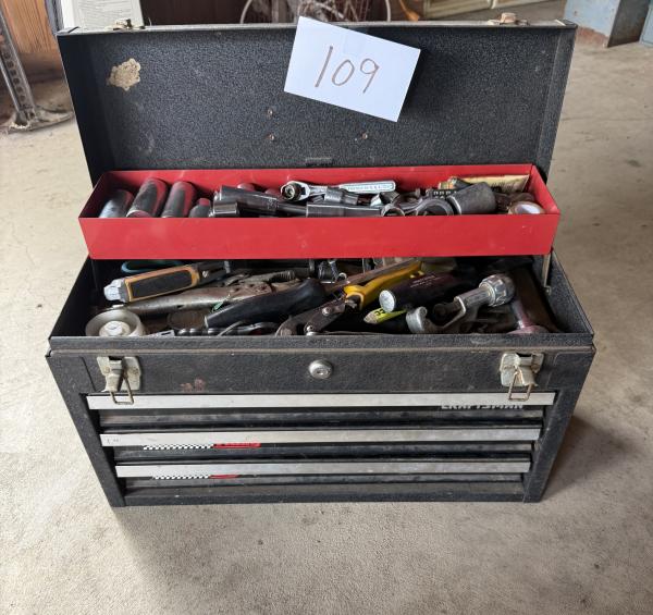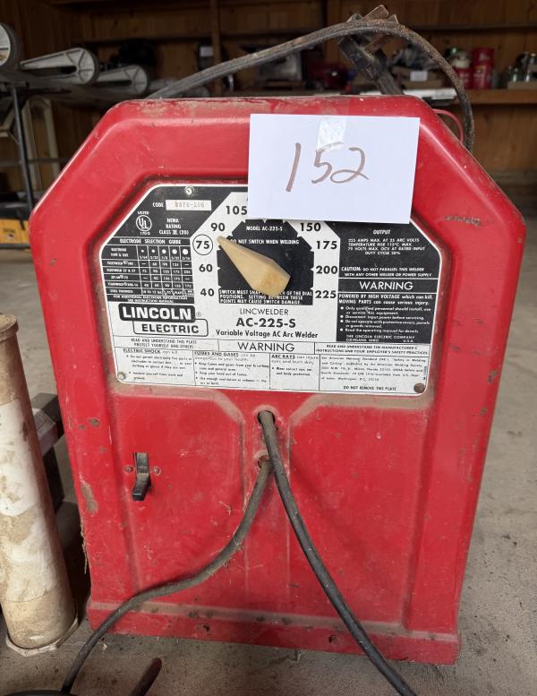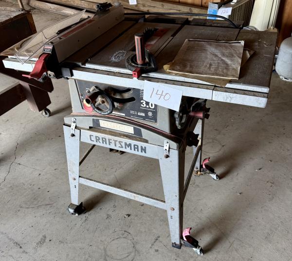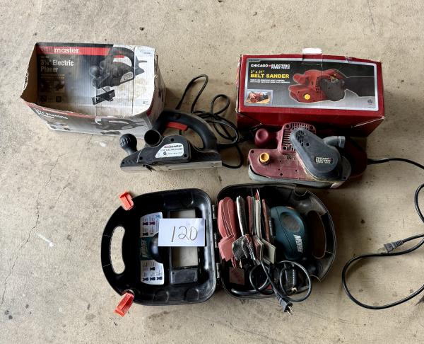 Tools: Hi-Lift jack, 2-wheel dolly, plastic sawhorses, Drill Master 3¼ electric planer, extension cords, metal toolbox, Task Force 10” table saw, Craftsman toolboxes: one with tools included, 21-piece ¾ socket set, plastic toolbox, Port-O-Brake bender, Craftsman 10” table saw, Black & Decker electric hedge trimmer, Black & Decker mouse sander, Craftsman 16-gallon shop vac, Champion Power Equipment 4000 portable generator, Craftsman electric drill, SKIL circular saw, Craftsman 9.2 volt impact drill w/charger, Craftsman ½ impact drill, Chicago 3 x 21 electric belt sander, Craftsman 1/3 hp auto scroll saw, Remington 14” electric trimmer, Century Machine 8” drill press, Craftsman ½ hp bench grinder, Craftsman reciprocating saw w/case, Morgan Chicago bench vise, Craftsman 2 hp 4-gallon pancake compressor, Lincoln electric AC 225S variable voltage AC arc welder w/leads, helmet & welding sticks, Milwaukee heavy-duty grinder, Black & Decker electric sander/polisher, miscellaneous Craftsman and no-name sockets, assortment of hand tools: pliers, tape measures, wrenches, rolling workbench, aluminum extension ladder, 6/2 AMP dual-range solar battery charger, 8’ aluminum ladder