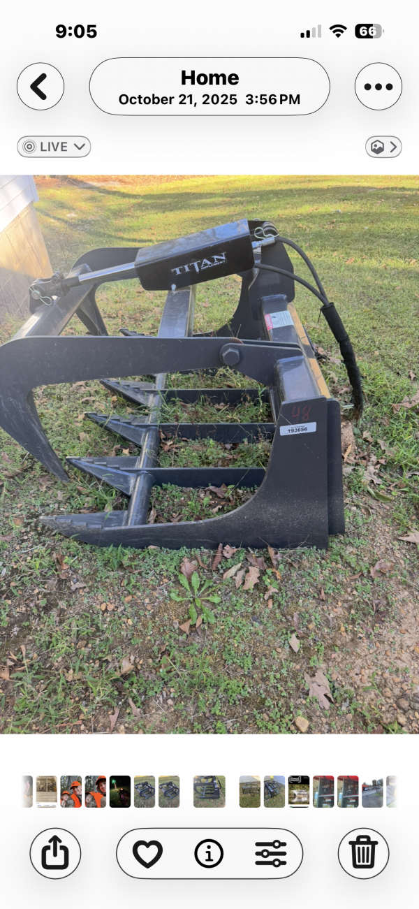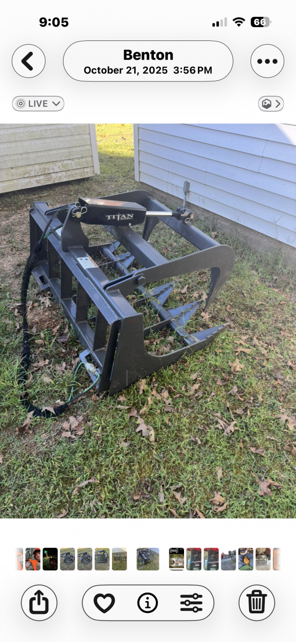 | For Sale 48 inch Titan Grapple in new condition fits skid steer attachment. |