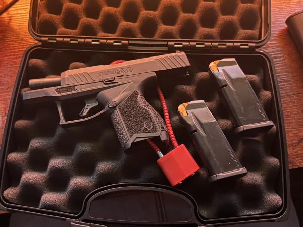 | For sale is a lightly used (under 200 rounds) Taurus GX4. Comes with two 11rd mags, gun/case lock, and a foam lined gun case for transportation. |