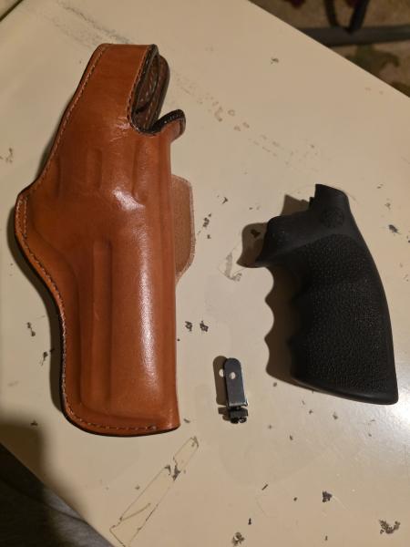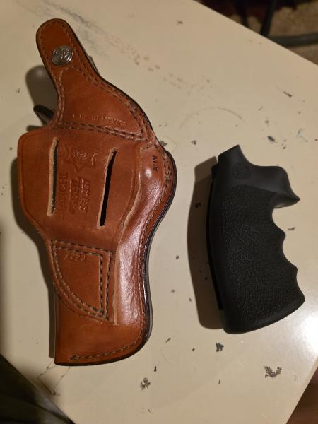 | Bianchi #5BHL leather holster for 4.25" or 4." Revolvers. Will fit Colt Python and Smith and wesson 686 as well as others, you can google the holster. Grip will fit Colt Python old and new models. Both are like new. Will separate. 270 33nine zero8zero5 |