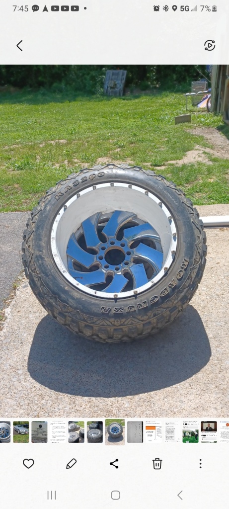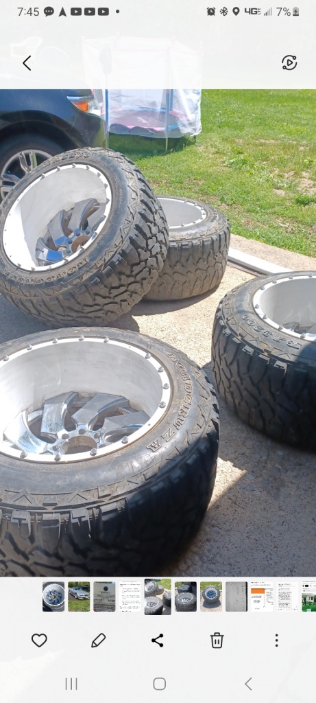 | 40 / 15.50 R24.\n The tires are like brand new blighted, Chrome rims. It is hard to find tires like this. They are wides. T more money than what I'm asking I am asking $4000 or best offer. Give me a call to 270nine70909seven. |