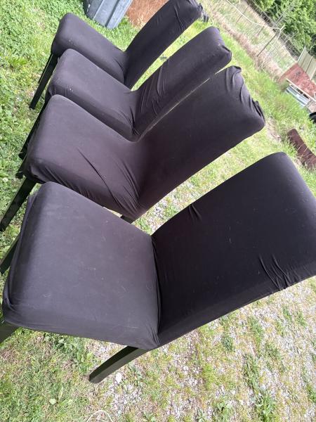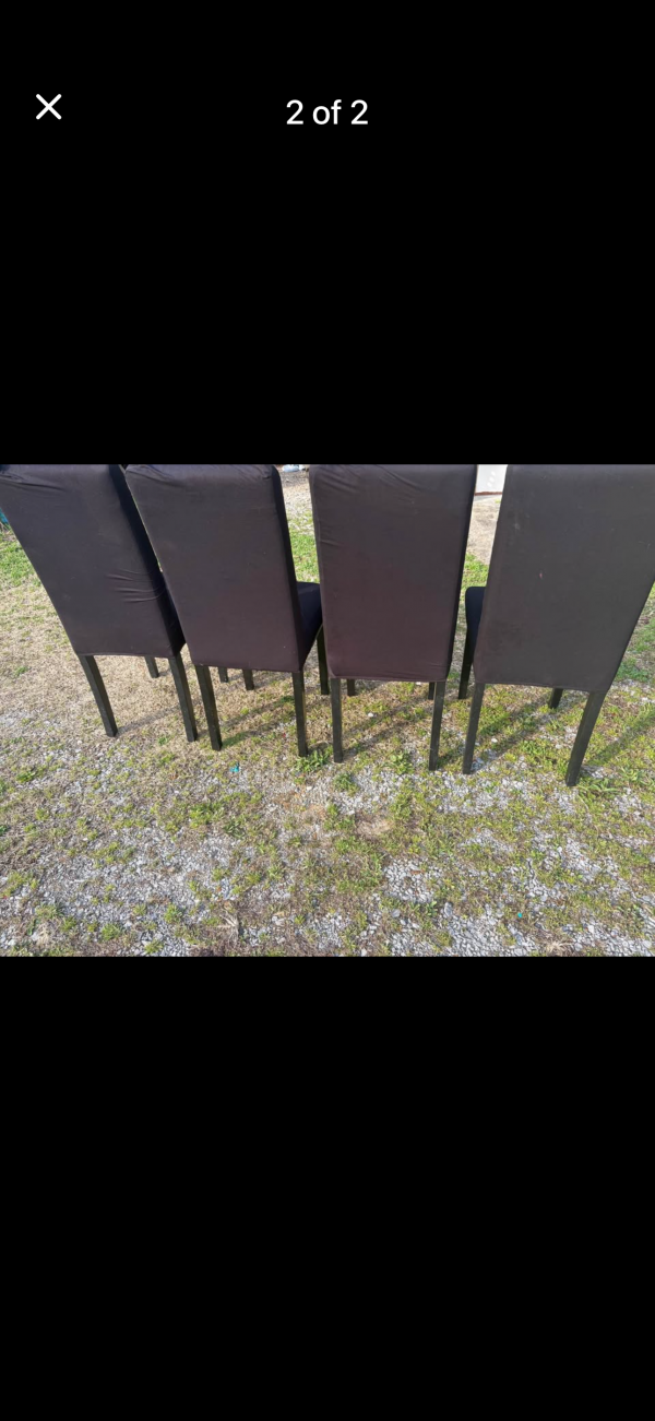 | 4 solid chairs they are peeling underneath but they have black covers also comes with another set of covers I’m only asking $35 for all 4 chairs call or text 270-559-9808 |